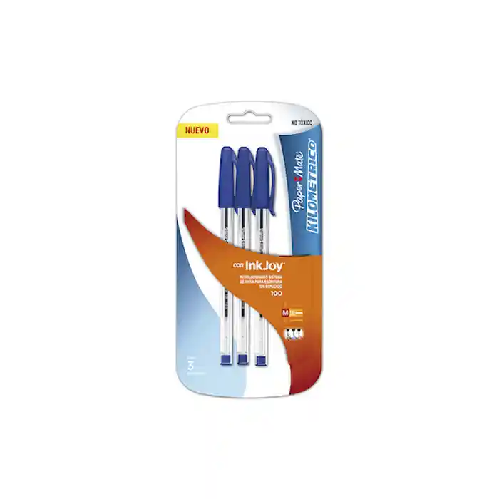 Boligrafo pasta paper mate suave color azul blister 3 unit
