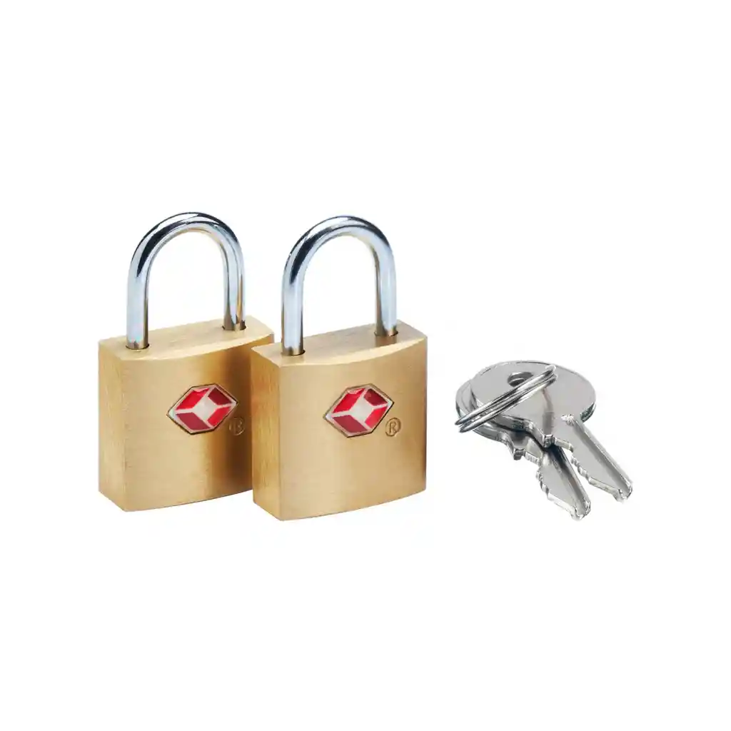 Viaja seguro con estos simples y sólidos candados de bronce de 25mm de ancho. Diseñados para adaptarse a la mayoría de los equipajes con cierre. Vienen dos candados con dos llaves. Material: laton, acero Cantidad por empaque: 2 unidades Incluye: 2 llaves Con sistema TSA. Medidas del Producto: 2,18 x 3,8 x 1,32 cm. Peso: 80 gr. Medidas del empaque: 14 x 8 x 1,5 cm. Importante: Estos candados con TSA permiten que las autoridades de seguridad de los aeropuertos puedan abrirlos para inspeccionar el equipaje sin romperlos. Importante: Los países que han implementado la tecnología TSA a la fecha son: EEUU., Canadá, Suiza, Austria, Holanda, Finlandia, Israel, Corea y Japón.