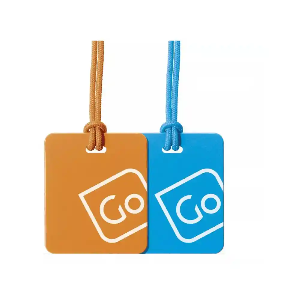 Brillantes, llamativas y reconocibles al instante, estas etiquetas de equipaje ultra delgadas hacen que cualquier maleta sea fácil de identificar. Divertidas y coloridas, se destacan en las cintas transportadoras de equipaje concurridas, además estas etiqueta, que vienen en un juego de 2 unidades, se adhieren fácilmente a cualquier maleta o bolso a través de un lazo seguro del mismo color. Material rPVC Contiene 2 unidades Medidas del producto: 5,7 x 7 x 0,1 cm Peso: 16 gr. Medidas del empaque: 19 x 10,3 x 0,3 cm.