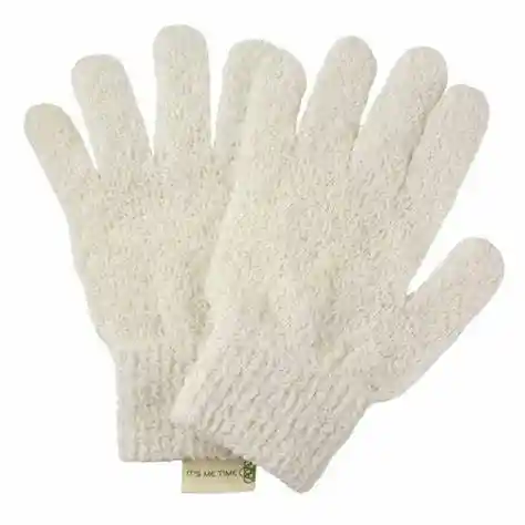 Par de guantes exfoliantes ducha colores : beige, gris , morado . medidas: 18.5 x 13 cm