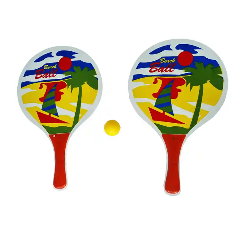 Descripción: . En este verano diviértete jugando tenis al aire libre en la playa o deportes junto a la piscina. . Excelente juguete para todas las edades. Diversión al máximo para todos y ayuda a despertar las habilidades motrices de los más pequeños. . Con mango reforzado y presentadas en bolsa redecilla con pelota. Compacto y liviano, fácil de transportar, llévelo a cualquier lugar. Especificaciones. . Material Raqueta: Madera . Material Pelota: Plástico . Dimensiones de las raquetas: 38 x 24 cm aprox. . Diámetro de la pelota: 4 cm. . Diseño: Playa mango rojo. . Contiene: 02 Paletas + 01 Pelota.