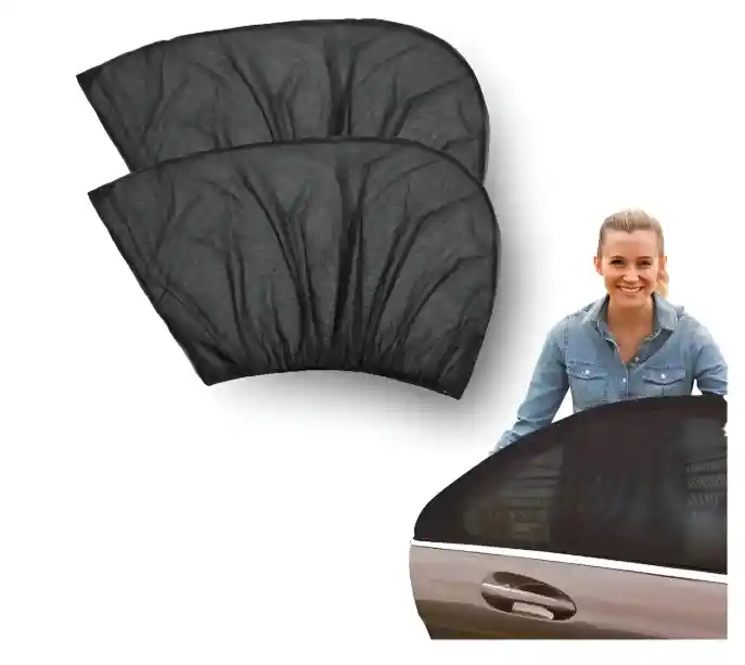 SOMOS MIKI IMPORTS Protege a tus pasajeros y a tu coche con nuestro parasol para ventanas traseras y protección solar de alta calidad. Diseñada especialmente para mantener eficazmente los rayos UV fuera del interior del vehículo, esta malla negra no solo ayuda a reducir la temperatura, sino que también mejora la privacidad de tu coche. Su instalación es rápida y sencilla, lo que la hace ideal para cualquier conductor que busque comodidad y funcionalidad. Con un tamaño de 70X30 cm, es ajustable y compatible con la mayoría de los modelos de coches, lo que la convierte en la solución perfecta para proteger a los niños del sol durante los viajes. Aprovecha todos los beneficios, que combina estilo y utilidad para transformar tu experiencia en la carretera. Opta por la calidad y el diseño práctico ¡Haz tu compra ahora y disfruta de un ambiente más fresco y seguro en tu vehículo!