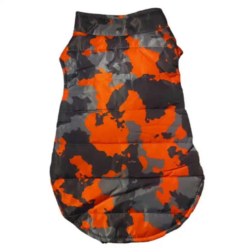 - Parka sin mangas con polar en su interior - Tiene cierre velcro en el pecho - En la parte trasera tiene ligas que se sujetan a las patas traseras para dar mejor firmeza. - Perfecto para el frio durante el invierno. Medidas Talla L: Largo: 35 cm Pecho: 45-49 cm Cuello: 25-29 cm Color: Camuflaje Rojo