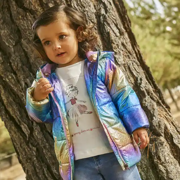 Parka Metalizada Arcoiris Con Gorro y Cierre. Forrada en Tafeta.