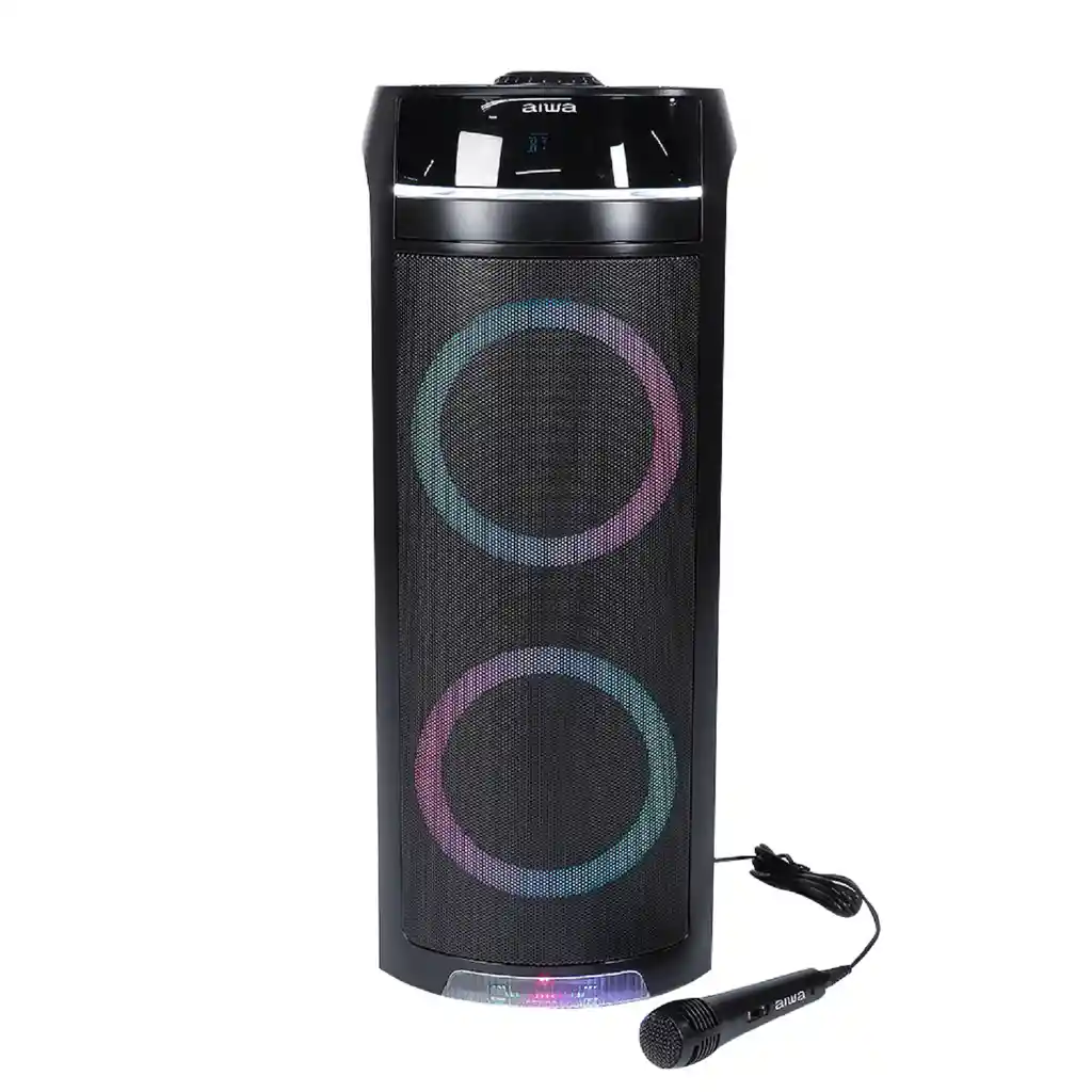 Parlante Aiwa AWPOK9 Portátil Karaoke Bt USB Deje que su estrella de rock interior brille con el altavoz de karaoke portátil Aiwa AW-POK9, este elegante altavoz portátil cuenta con un sonido potente y un micrófono incorporado para que pueda cantar con todo su corazón sus canciones favoritas, para que pueda crear un ambiente de fiesta donde quiera que vaya. Ya sea que esté organizando una fiesta con amigos o simplemente relajándose en casa, el altavoz de karaoke portátil Aiwa AW-POK9 es la manera perfecta de relajarse y divertirse Características del Producto Altavoz portátil recargable Radio estéreo FM PLL Puerto USB x1 para reproducción de múSíca Puerto USB x1 para carga Función bluetooth TWS 5.0 Aux-in 3.5 mm in jack x1 Aux-in 6.3 mm Mic Jack x2 Tipo de pantalla LCD 5 ecualizadores preestablecidos Luces Led con selección de modos intermitentes 2 Altavoz de 6,5" x2 + 2 tweeters de 2'' Potencia de salida máxima 500w PMPO Botón Super BASS para aumentar los graves Fuente de alimentación: modo conmutado AC100V -240V Tiempo de recarga: 3 horas Tiempo de descarga: 7 horas Incluye: Micrófono Medidas: 25(L) x 26 (D) x 62.5 (H)