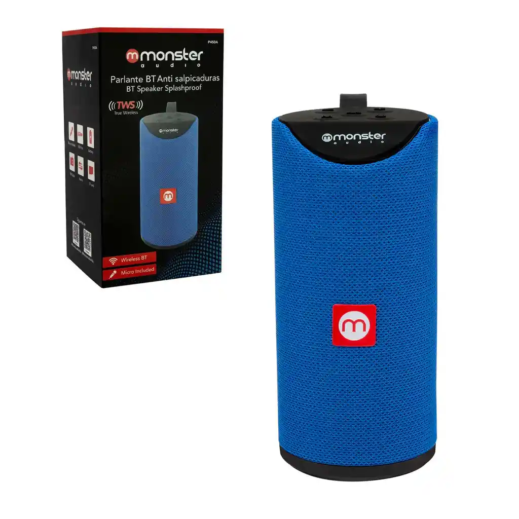 Conectividad Bluetooth, función TWS, empareja dos parlantes iguales, micrófono integrado para llamadas, radio FM, puerto Micro SD, entrada auxiliar, batería de ion de litio 1200mAh integrada, carga en pc mediante cable USB.