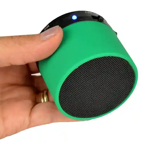 Descripción: Color esmeralda (Verde) Tamaño Compacto Bluetooth 3.0 inalámbrico Batería recargable (hasta 2 horas de duración de la batería) cable 2 en 1 mini USB y puerto auxiliar Botones de Saltar atrás / Reproducir / Pausa / Saltar adelante LED de encendido Micrófono Ranura para tarjetas TF Incluye: Parlante Bluetooth portátil Cable de carga mini USB incluido con conector auxiliar Instrucciones