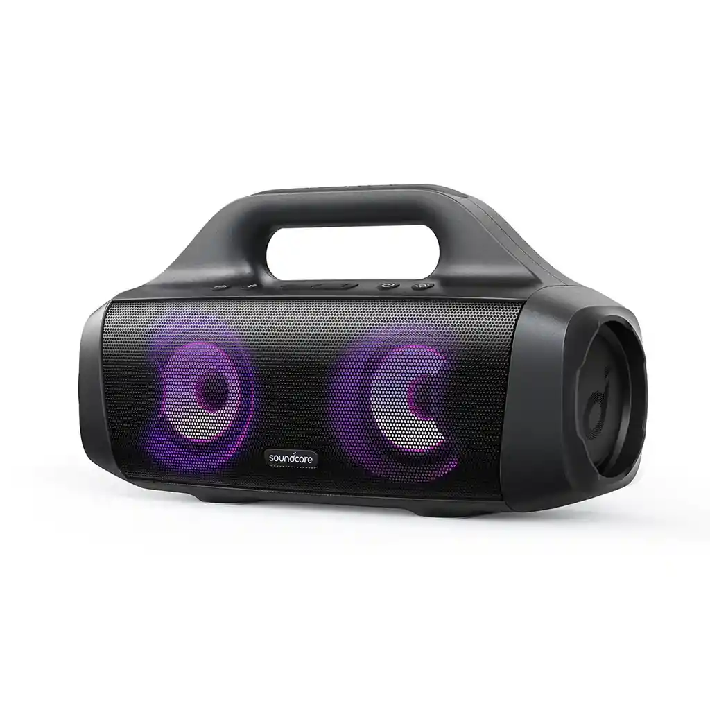 Parlante Bluetooth con tecnología BassUp con Sonido Estéreo y tecnología Party Cast que permite conectar hasta 100 parlantes. 30w de potencia, Bluetooth 5.0, hasta 16 horas de batería y tecnologpia IPX7 ideal para salidas outdoor. Luces LED que cambian de acuerdo a lo que escuches. Compatible con la aplicación de Soundcore (iOS y Android), lo que amplia la cantidad de funcionalidades con el equipo para una mejor experiencia en su uso, personaliza la forma en que oyes tu música favorita. 30w de potencia para disfrutar a todo volumen, Enlaza hasta 100 parlantes del mismo tipo y crea una fiesta increíble vía la tecnología PartyCast.