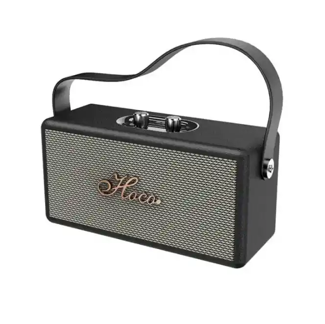 Modelo: Altavoz Bluetooth de cuero retro HOCO DS61 Versión de Bluetooth: 5.3 (AC6966B) Unidades de altavoz: 2,5 pulgadas × 2 Potencia de salida: 7 W × 2 Capacidad de la batería: 2400 mAh Tiempo de carga: 3-4 horas Tiempo de juego: 2-3 horas Modos de reproducción: Bluetooth, tarjeta TF, disco USB, AUX Dimensiones: 263 × 100 × 134 mm Peso: 1361g