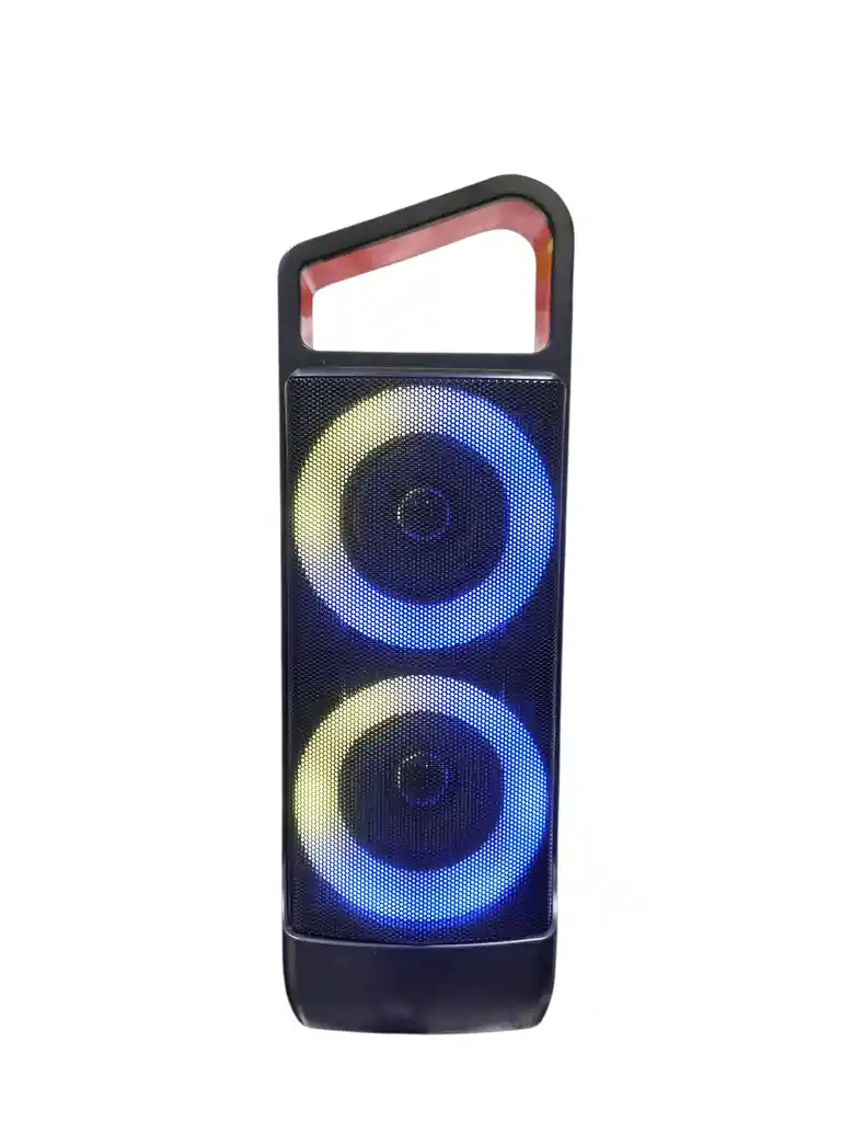 Disfruta de tu música con gran potencia y efectos de luces LED. Parlante portátil tipo torre, perfecto para fiestas y reuniones. Conexión Bluetooth, entrada auxiliar y diseño con asa para transportar fácilmente. Color Naranjo.