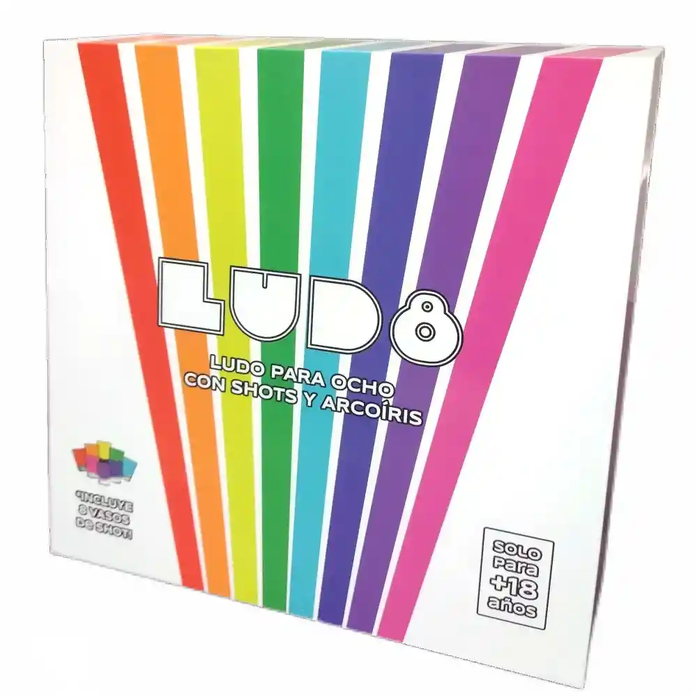 El clásico de los juegos de mesa renovado, incluye shots y los colores del arcoíris. Juega LUD8, la nueva y mejorada versión del Ludo, con más jugadores, más copete ¡y más color! Ideal para una noche de carrete con amigos o para conocer gente nueva, llega LUD8, un juego más grande, más rápido, más competitivo, más colorido, más alcohólico, más trans-versal, más hermoso y altamente adictivo. Es el regalo perfecto porque viene con 8 vasitos de shots de vidrio con los colores del arcoíris. Regálaselo a tu partner de carrete o a esos amigos que se fueron a vivir juntos y que todavía no tienen vasos. Te lo aseguramos, este regalo será el alma de la fiesta. Jugadores: 2 a 8 Edad: +18
