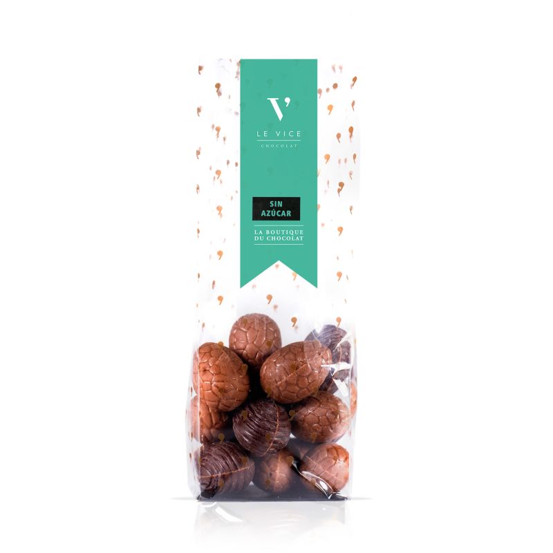 Exquisitos huevitos sin azúcar de leche 42% y negro 64% macizos.