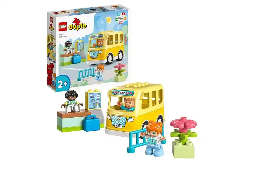 A los peques en edad preescolar les aguardan divertidas aventuras cotidianas con el set Mi Ciudad LEGO® DUPLO® Paseo en Bus (10988). Este colorido juego de juguetes permite a tu bebé de 2 años o más imaginar que va a la guardería con sus mejores amigos. Los niños esperan pacientemente la llegada del bus sentados en el banco de juguete de la parada mientras descubren todas las cosas ricas que llevan en su fiambrera. Juguetes educativos preescolares para divertirse aprendiendo Los sets LEGO DUPLO incluyen personajes diversos para que los más pequeños puedan jugar a hacer amigos. Además, desarrollan habilidades motrices finas abriendo el techo del bus escolar para colocar dentro las figuras. Estas pueden esperar de pie tras la valla a que el autobús se detenga para aprender a comportarse cuando hay tráfico cerca. Como todos los juguetes LEGO DUPLO para bebés, este set pone en las manos de niños y niñas la oportunidad de expresarse, explorar y divertirse jugando como quieran. • Bus escolar de juguete para adquirir habilidades: Los bebés a partir de 2 años se embarcan en una aventura cotidiana y desarrollan habilidades sociales y su motricidad fina con el juguete Mi Ciudad LEGO® DUPLO® Paseo en Autobús (10988). • Personajes diversos y detalles llenos de realismo: Este juguete preescolar viene con 2 niños y una figura de una conductora, un bus con techo desmontable, un banco, una señal de tráfico, una torre con un reloj y una flor construible. • Estímulos para la imaginación de los peques: Los personajes se ponen en fila en la parada del bus de juguete y miran el reloj, suben a bordo del bus y, después, abren sus loncheras para ver qué llevan mientras van a la guardería. • Juguete de aprendizaje preescolar: Los niños aprenden a ser pacientes esperando el bus de juguete, imaginan que se hacen amigos de otros niños y desarrollan su motricidad quitando el techo del vehículo para colocar dentro las figuras. • Regalo para mayores de 2 años: Este juguete educativo preescolar de construcción y juego es apto para niños y niñas con pasión por los vehículos que disfrutan interpretando el mundo que les rodea. • Un montón de espacio para explorar con sus deditos: El bus LEGO® DUPLO® mide aproximadamente 7 cm de altura, 14 cm de longitud y 10 cm de anchura. • Instrucciones de construcción digitales: La app LEGO® Builder incluye una versión digital de las instrucciones de construcción que vienen con este set. • Juguetes de aprendizaje para pasarlo genial en familia: Todos los sets LEGO® DUPLO® plantean divertidas historias, cuentan con brillantes colores y contienen personajes diversos para que bebés y papás puedan compartir valiosos momentos de juego. • Un producto de calidad: Los componentes LEGO® DUPLO® cumplen rigurosas normas del sector para asegurarnos de que los deditos puedan cogerlos, colocarlos y separarlos con facilidad; así ha sido desde 1969. • La seguridad es lo primero: Este juego LEGO® DUPLO® sobre asistir a la guardería se ha sometido a pruebas intensivas para garantizar que satisfaga estrictos estándares mundiales de seguridad.