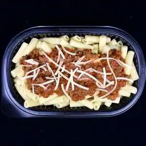 Salsa de tomates natural, carne molida de vacuno, cebolla, zanahoria, vino tinto y hierbas.
