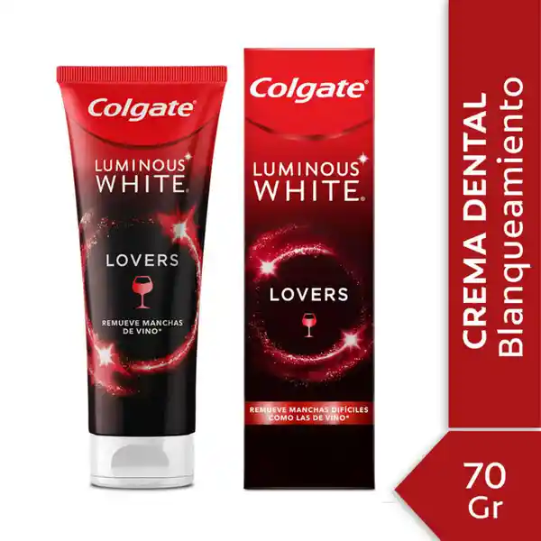 ¿Quieres Saber Cómo Tener Los Dientes Más Blancos Sin Renunciar a lo Que Más Amas? Descubre la Pasta Dental Blanqueadora Colgate Luminous White Lovers Wine. Especializada en Blanqueamiento Dental, es Ideal Para Los Amantes Del Vino ya Que su Fórmula Clínicamente Probada Elimina Las Manchas en Los Dientes Causadas Por Los Dientes. Por el Vino, Protegiendo el Esmalte de Los Dientes y Dejando en la Boca el Sabor de la Menta Fresca.
