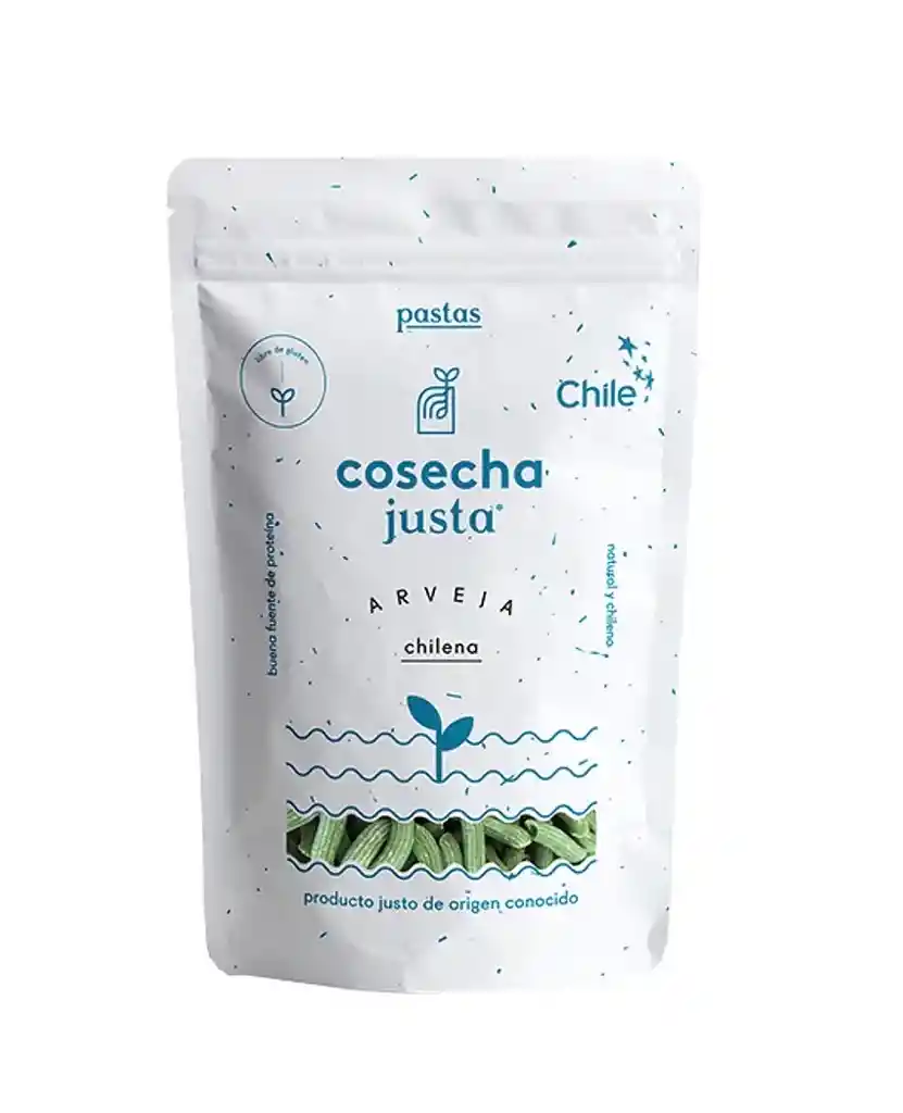 Pasta de arvejas chilenas, certificada Libre de Gluten y Comercio Justo. Las arvejas provienen de pequeños agricultores chilenos y son molidas en nuestro molino de piedra para obtener la harina usada en la pasta. Buena fuente de proteína y fibra, bajo índice glicémico. Su único ingrediente es harina de arveja. Formato 400 gr