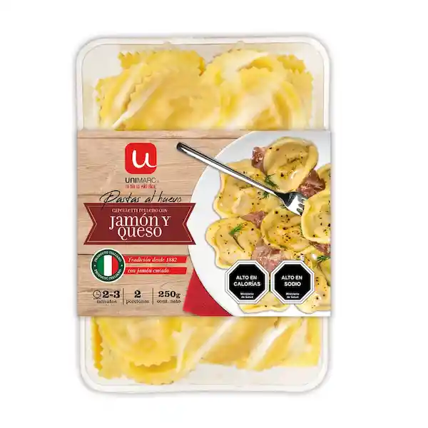 Disfruta de esta deliciosa pasta que viene rellena con jamón y queso, solo es calentar durante 2 o 3 minutos y listo. Rinde para dos porciones.