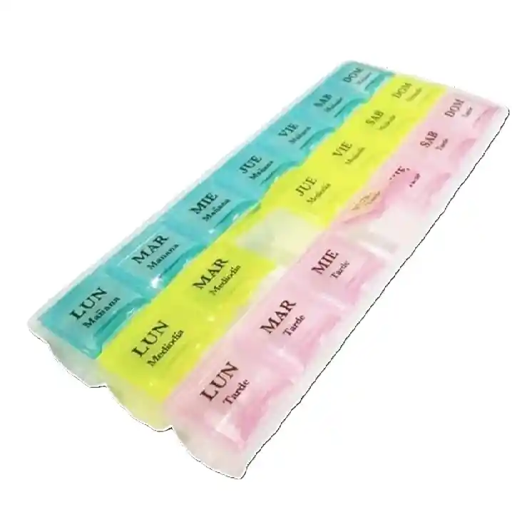 Pastillero de plástico compacto y resistente, diseñado con siete compartimentos individuales para organizar tus medicamentos diarios y 3 tomas diarias. Su tapa de cierre seguro garantiza la protección de tus pastillas mientras estás en movimiento. Ideal para llevar contigo en viajes o en tu día a día.