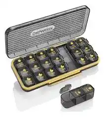 Caja organizadora de medicamentos de tres tomas, 22 x 9.5 cm.