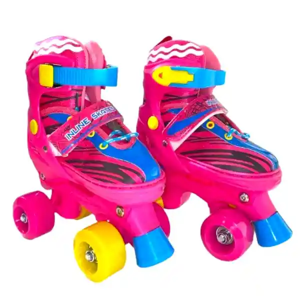 Patín de 4 ruedas rosado ajustable, frenos delanteros, caña alta, bota semirrígida de cuero sintético Tamaño: S (31-34) SOLO ROSADO