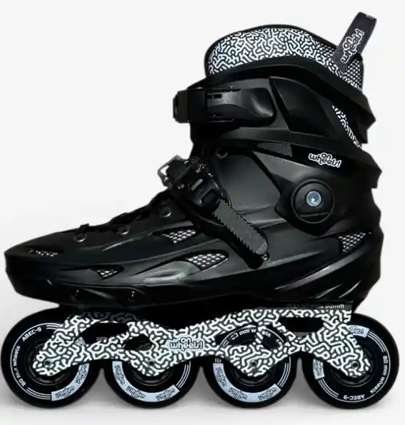 Marca: OnWheels Tipo: Freeskate Rodamientos: ABEC-9 Ruedas: 80 mm – dureza 85 Material ruedas: Poliuretano (PU) Frame: Aluminio con patron (mate) Bota externa: Rígida OnWheels Bota interna: Acolchada OnWheels Ajuste: Broches y cordones Freno: No incluye