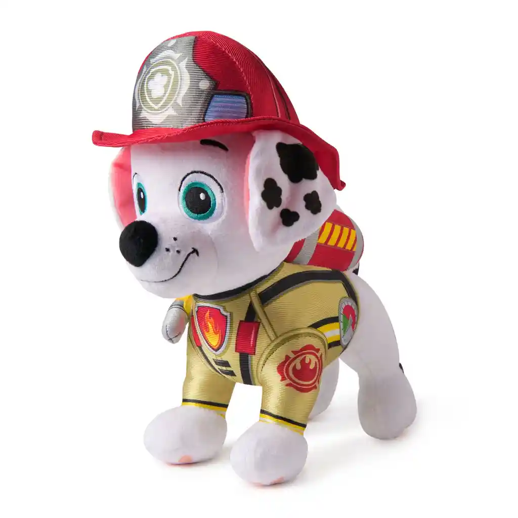¡Crea aventuras heroicas con el peluche Marshall de Bomberos y Rescate! Este peluche grande y abrazable es una encantadora adición a cualquier colección de juguetes de aprendizaje de la Patrulla Canina para niños. Marshall viste su uniforme especial del equipo de Bomberos y Rescate, con una mochila extintora y una manguera suave, lo que lo convierte en un compañero PAWsome para misiones de juego de simulación. Con orejas caídas y pelaje supersuave, la adorable cara de Marshall presenta finos detalles bordados que le dan vida, listo para cualquier misión de rescate. Mide 26cm de alto aprox.