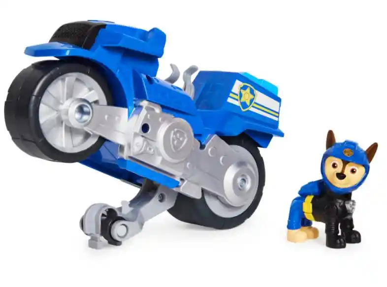 La motocicleta única de Chase presenta gráficos y detalles auténticos, ruedas grandes y una función de retroceso que le permite realizar caballitos. Equipado con su chaqueta y casco de motocicleta, Chase (figura incluida) está listo para la emocionante acción de Moto Pups. Cuando llegue el momento de una misión de alta velocidad, coloque a Chase en el asiento del conductor, tire del vehículo hacia atrás y observe cómo se aleja. La motocicleta de Chase se lanza hacia adelante, haciendo un caballito y corriendo directamente hacia la aventura. También puedes empujar el Vehículo Deluxe de Chase para jugar a mano. Se recomienda 3 años en adelante.