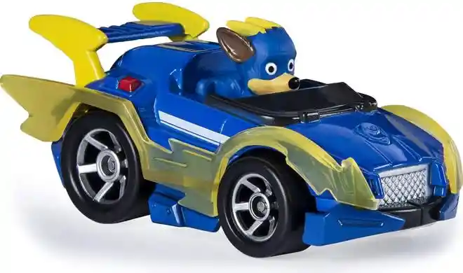 La Patrulla Canina está lista para competir con el rescate en sus vehículos Ready Race Rescue True Metal, Mighty Pups. Estos vehículos de metal a escala 1:55 se parecen a los coches de carreras de la Patrulla Canina. Con detalles y gráficos auténticos. Empuja el vehículo a mano o lánzalo hacia adelante para aventuras de alta velocidad. Cada cachorro lleva su equipo de carreras, moldeado dentro de sus vehículos con orejas flotando en el viento, corriendo al rescate. Se recomienda de 3 años en adelante.