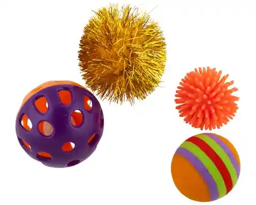 Pawise set 4 pelotas gatos es un divertido set de pelotitas para que nuestros pequeños gatitos se diviertan co...Ver más