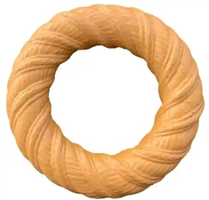 "El anillo para masticar Pet Qwerks está diseñado para que tu perro pueda buscarlo, tirarlo y masticarlo, todo en un juguete. Además, es deliciosamente saborizado con mantequilla de maní, sin alérgenos Hecho de nailon duradero, compatible con la FDA y mantequilla de maní, libre de alérgenos. "