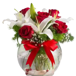 Pecera Primaveral de Rosas y Lilium
