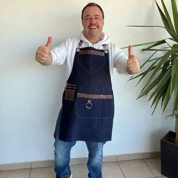 Para parrillar con estilo, comodidad y seguridad. Esta nueva pechera PK esta confeccionada con mezclilla de alta calidad, 100% forrada y con aplicaciones de cuero natural. La puedes ajustar tanto en la cintura como en la parte superior. Es también una excelente opción para regalar.
