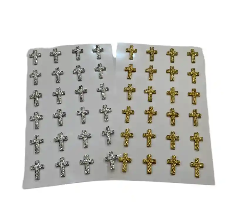 Hermosa y practica pegatina sticker acrílico en forma de Cruz Se envia color según disponibilidad Tamaño de la pieza 1,5 cm 24 unidades aproximadamente por empaque