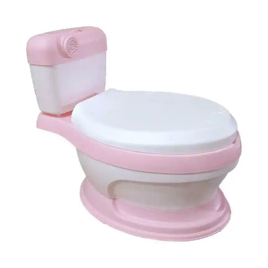 Pelela Con Sonido Descarga de Agua, acompaña a tu pequeño/a en el proceso de ir al baño solo. Características: Diseño más cómodo, con asiento mullido. Tiene sonido de descarga de agua. Antideslizante en la parte inferior de la base para mayor seguridad. No incluye pilas. Se requiere 3 baterías tipo botón (LR44) de 1.5 volt Total 4.5V El recipiente es extraíble para limpiar fácilmente. Ideal para la transición de pañal al inodoro. Edad recomendada: 18 m+. El tanque de agua es ficticio. No verter agua en el interior.