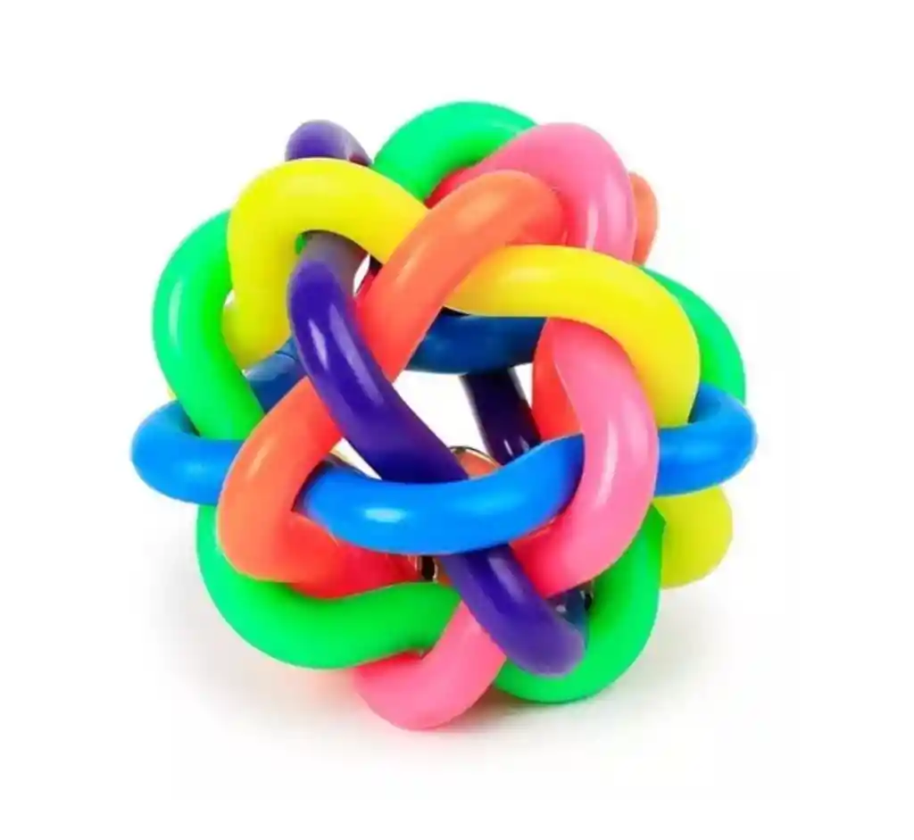 Pelota multicolor con cascabel, trenzada de material de goma Para perros y gatos