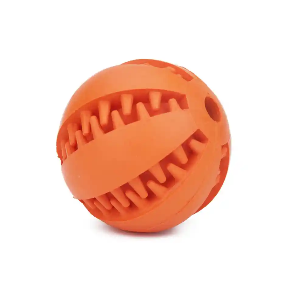 Este juguete puede despertar la curiosidad y diversión en las mascotas. . Material no tóxico e inofensivo para mascotas. Los perros pueden masticarlo para limpiar sus dientes. . Pueden ayudar para hacer algo de ejercicio para aliviar el mal humor y liberar la presión. . En los espacios entre la pelota puedes colocar algunos aperitivos alimentos o snack favoritos de tu mascota y el perro se sentirá atraído. Especificaciones: . Material: Goma. . Dimensión: 7 cm de diámetro. . Colores: Naranja . Contenido: 1 Pelota Interactiva.