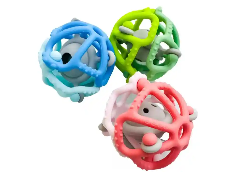 Bola de diseño abierto permite descubrir diferentes formas, desarrollando las habilidades motrices más finas de agarre y coordinación mano-ojo. – Blando y flexible. Permite estirar y aplastar. – Fácil de agarrar. – Hecho de silicona de grado alimenticio, 100% sin tóxicos