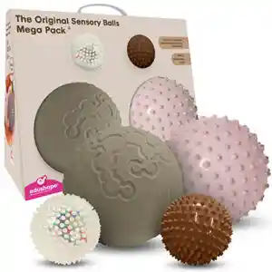 Estas pelotas sensoriales originales de Edushape de colores suaves y gran calidad son excelentes para el desarrollo de los más pequeños. Si existe un juguete universal para el desarrollo infantil estas pelotas son ese juguete. Diseñadas para desarrollar la sensibilidad a través de texturas y colores, la motricidad fina a través de distintos tamaños y la motricidad gruesa a través del rebote y el movimiento del bebé. Fabricadas en material suave y resistente. Incluye 4 pelotas: 2 de 10 cm de diámetro y 2 de 25 cm de diámetro.
