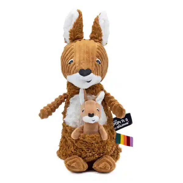 ¡Conoce a Allezou, la mamá canguro más cariñosa y divertida! Siempre lista para saltar, esta increíble mamá lleva a su bebé en un bolsillo con velcro en su vientre, asegurándose de que estén juntos en cada aventura. ¡Prepárate para disfrutar de la doble dosis de cariño que trae este equipo madre-hijo! Hecho de cotelé suave y acolchado con poliéster reciclado, este peluche de 30 cm combina calidad, sostenibilidad y diseño adorable, perfecto para acompañar a tu pequeño con abrazos y juegos llenos de amor. • Doble diversión: Incluye a la mamá canguro y su pequeño, que se guarda en un práctico bolsillo. • Tamaño perfecto: 18 x 25 x 30 cm, ideal para abrazar, dormir o jugar. • Material suave y amigable: Hecho con cotelé y algodón, seguro para la piel delicada de tu bebé. • Eco-consciente: Acolchado con poliéster reciclado, cuidando el planeta mientras juega. • Perfecto desde el nacimiento: Un regalo ideal para recién nacidos, cumpleaños o cualquier ocasión especial. • Fácil de limpiar: Lávalo a máquina en frío y sécalo al aire para mantenerlo siempre listo. Con Allezou, tu bebé tendrá a una mamá canguro como compañera fiel, lista para abrazar, salt