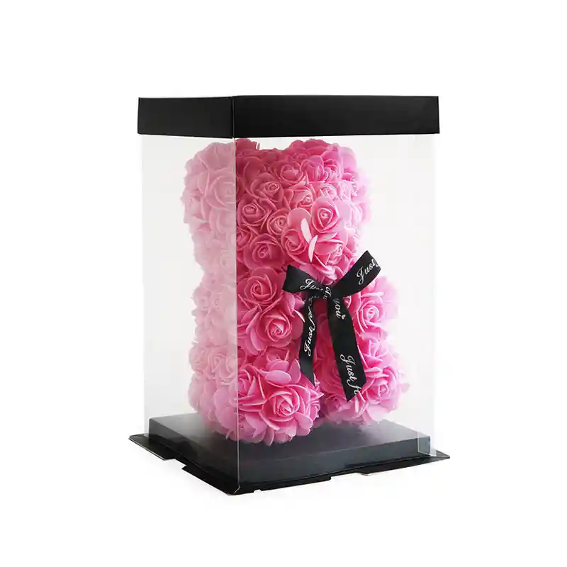 Oso Rosa Decoración para fiesta de boda Regalo del Día de San Valentín Dibujos animados lindos Super Novia Regalo para chico Oso de amor Oso con rosas de goma eva Incluye caja transparente para mejorar la presentación de regalo Es un regalo perfecto para aniversarios, cumpleaños, bodas, Día de San Valentín o cualquier ocasión donde necesites un regalo único y precioso. También para cumpleaños, fiestas, cotillón y todo tipo de celebraciones. Tamaño : 22 cm Aproximadamente Colores Disponibles : Rojo, rosa, blanco, blanco rosa, rosa blanco y lila , rojo blanco