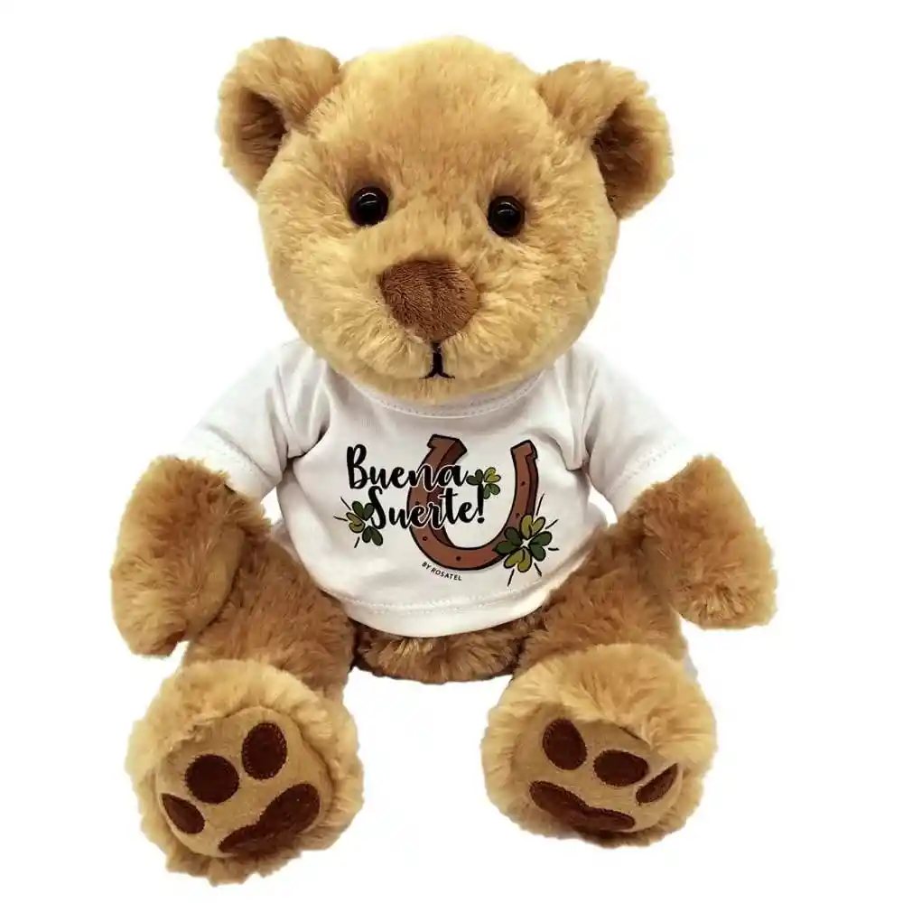 Oso de Peluche Hugo mediano con polo Buena Suerte Medida (35 cms) aprox.