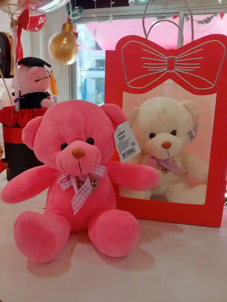 Peluchito rosado/amarillo trae su bolsa de obsequio
