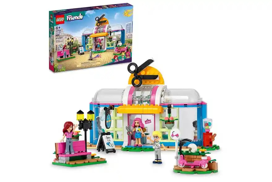 A los niños a partir de 6 años les encantará explorar la Peluquería LEGO® Friends (41743) con Paisley y Olly. Este set cuenta la historia de la tímida Paisley, que está inquieta porque quiere cortarse el pelo y no sabe qué estilo le sentará mejor. Pero aquí está su amable amigo Olly para tranquilizarla. Los peques podrán interpretar la aventura llevando a los amigos a la peluquería de Nadia y ayudando a la estilista con el cambio de imagen de Paisley. Hay mucho por descubrir, como las áreas de lavado y peinado del local, y la máquina de chicles, el aparcamiento de escúteres y el banco del exterior. Cuando Paisley esté lista, los niños pueden cambiarle la peluca y la expresión facial para ver su nuevo aspecto. Potencia la diversión Construir se convertirá en una intuitiva aventura para los peques con la app LEGO Builder, que les permite acercar y girar modelos en 3D, guardar sets y controlar su avance en el proceso de construcción. • Set de construcción para niños a partir de 6 años: Inicia a tu pequeño entusiasta del juego creativo en el mundo de la construcción y la interpretación de historias con el divertido set LEGO® Friends Peluquería (41743). • 3 minipersonajes: El set incluye a los personajes de LEGO® Friends Paisley, Olly y Nadia, el edificio de la peluquería, con su detallado interior y exterior, y también el escúter de Olly y un banco para sentarse. • Accesorios de peluquería: Contiene plantas, productos para el cabello, dinero, una máquina de chicles, una señal, una lámpara de calor y una escoba. • El cambio de imagen de Paisley: Los peques pueden cambiarle la peluca y la expresión facial a Paisley para mostrar el antes y el después de su visita a la peluquería. • Un regalo para niños: Este set de juguetes LEGO® Friends es estupendo para hacer un divertido regalo sorpresa o de cumpleaños a peques a partir de 6 años que se lo pasarían fenomenal construyendo una peluquería y jugando a ser estilistas. • Medidas: La Peluquería mide aproximadamente 14 cm de altura, 25 cm de anchura y 9 cm de profundidad. • Una divertida manera de construir: Descubre las intuitivas instrucciones disponibles en la app LEGO® Builder, donde los niños podrán acercar y girar modelos en 3D, controlar su avance en el proceso de construcción y guardar sets. • La nueva generación de Heartlake City: En enero de 2023, ampliamos el universo LEGO® Friends con nuevos personajes y nuevos lugares que servirán de inspiración para interpretar más aventuras. • Un producto de calidad: Todos los componentes LEGO® cumplen estrictas normas del sector para garantizar que ofrezcan siempre las mismas cualidades, sean compatibles entre sí y resulte fácil construir con ellos; así ha sido desde 1958. • La seguridad es lo primero: Los elementos y ladrillos LEGO® Friends se dejan caer, se calientan, se aplastan, se retuercen y se analizan para verificar que satisfacen rigurosos estándares mundiales de seguridad.