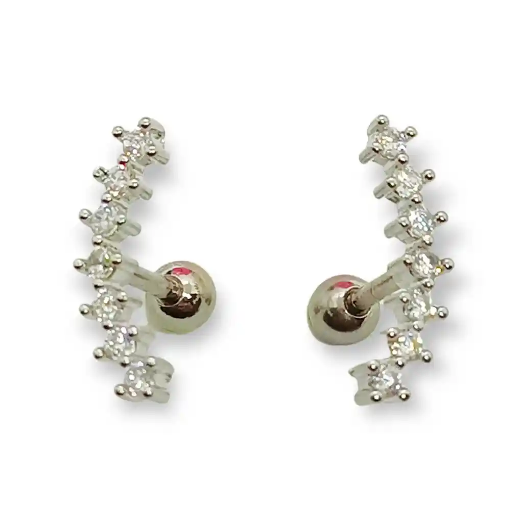Pendientes Curvos Zirconio Blanco Hipoalergénicos Con Tapa De Seguridad Piercing Helix