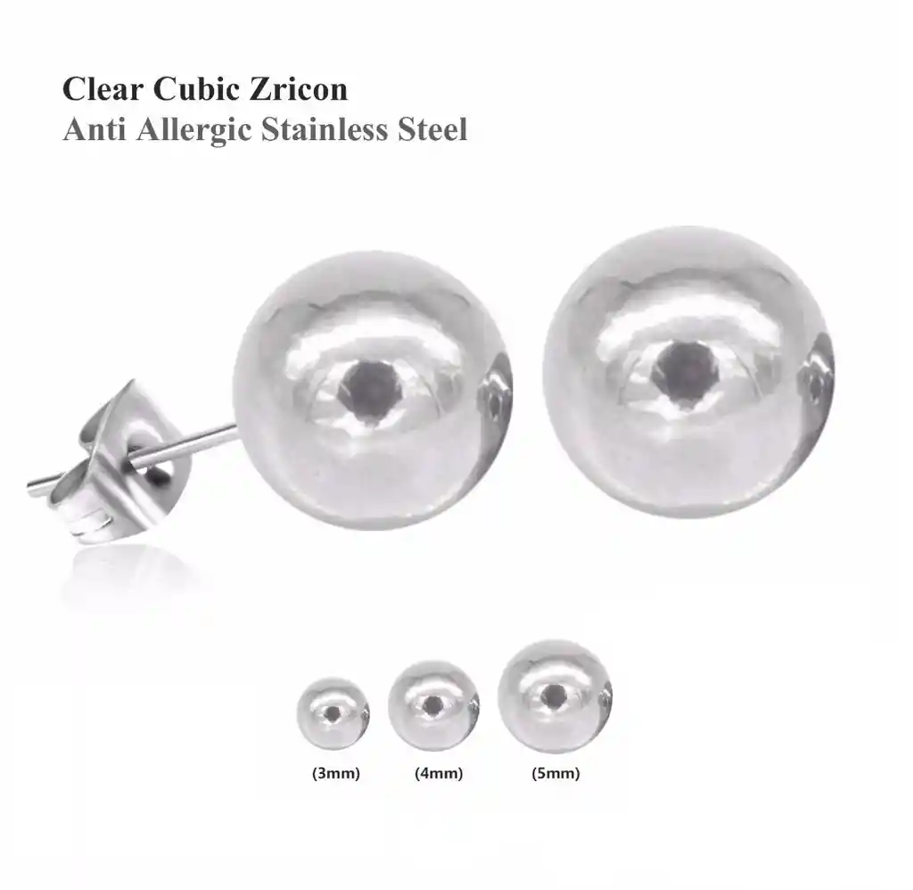 Hermosos pendientes tipo bailarina de esfera, elaborados en acero quirúrgico hipoalergénico. Ideal para pieles sensibles. Disponible en 6 tamaños distintos Metal: Acero Quirúrgico pulido hipoalergénico. Diámetros disponibles: 3mm, 4mm, 5mm, 6mm, 7mm y 8 mm. Esta publicación corresponde a la de 4 mm Peso aproximado: 1 g (Se envía con bella caja de regalo)