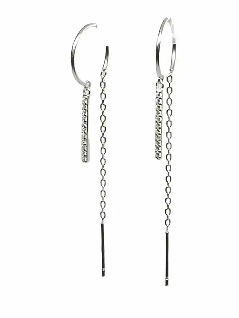 ¿Qué es lo primero que se viene a tu mente cuando piensas en algo minimalista? Estamos seguros que no se te vienen palabras, pero si imágenes. El término minimalista, es la tendencia a reducir a lo esencial, simplificar los elementos sobrantes. La frase que resume la filosofía minimalista es la famosa "menos es más"; acaso, ¿No lo sientes al ver esta hermosura? Una pequeña y resistente pieza de plata fina ley S925 con un monolito de incrustaciones de zirconios cúbicos, que aporta elegancia y sencillez a la pieza. Ideal para potenciar un look profesional y sobrio o una pieza urbana yk2, con su tamaño y forma geométrica es especial para combinar con más joyas. Una pieza que no debe faltar en tu joyero. Metal: Plata fina ley S925, hipoalergénica. Ideal para pieles sensibles. Piedra: Zirconio. Medidas: 52 mm (Largo) x 2 mm (Ancho) x 12mm (Diámetro) Peso aprox: 2 g aproximadamente (Todos nuestros artículos se envían con bella caja de regalo)