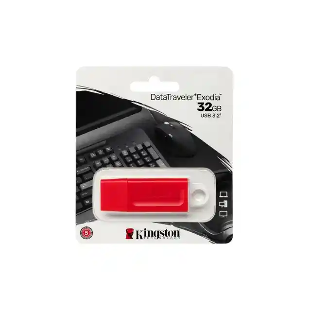 PENDRIVE 32GB KINGSTON USB 3.2 DATA TRAVELER EXODIA COLOR Rapidez y comodidad. Práctico capuchón para proteger el conector USB. Presilla de gran tamaño para usarla fácilmente al llavero. Ideal para el uso diario en el trabajo, el hogar, los estudios o donde quiera que lleve sus datos. Capacidad: 32GB. Velocidad: USB 3.2 Gen 1. Dimensiones: 67,3 mm x 21,04 mm x 10,14 mm. Peso: 11g. Temperatura de servicio: 0°C~60°C. Temperatura de almacenamiento: -20°C~85°C. Compatible con Windows® 10, 8.1, 8, Mac OS (v.10.10.x +), Linux (v. 2.6.x +), Chrome; OS.
