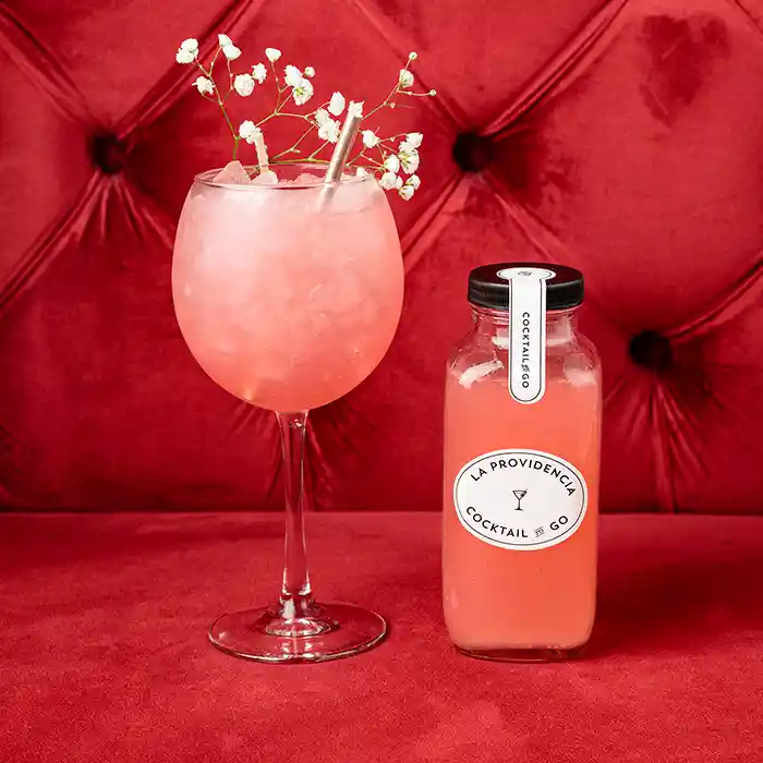 Tequila El Jimador Blanco, jarabe de granada, unos toques de lavanda y ramazzoti, terminado con tónica. Una delicia para tomarse unos cuantos. Viene como se ve en la foto, copa, decoración y hasta el hielo, para que lo repliques en casa. Estilo copa y/o vaso sujetos a disponibilidad.