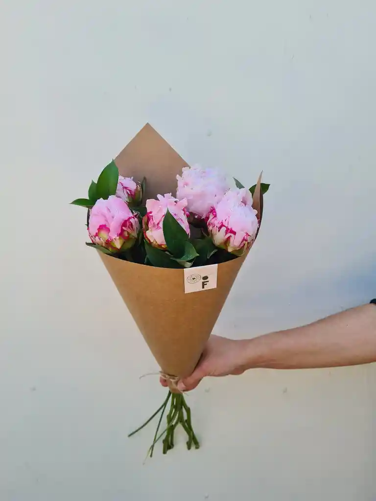 ¡Ramo de 5 preciosas peonías rosadas cultivadas en chile! Son las flores más deseadas del año y ahora están disponibles en primavera. Largo: 45 Cm aprox. Duración: 5 días aprox.