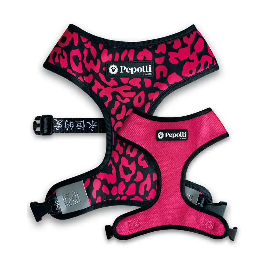 Estilo europeo que marca tendencia en la moda para perritos. Seis accesorios en el mismo exclusivo diseño = infinitas combinaciones. Nuestro arnés 2 en 1 Pepolli es reversible, cada lado destaca por su único y llamativo diseño. 2 estilos en 1 arnés, úsalo por el lado que desees. Fabricado con altos estándares de calidad y comodidad, se caracteriza por ser liviano, suave, resistente y seguro. Características y beneficios: Confeccionado con Neopreno y Airmesh: Suave, resistente, transpirable, de secado rápido y muy cómodo de usar. Se puede humedecer para dar frescura extra en días de calor. La resistencia de este material, lo hace durable en el tiempo y fácil de limpiar. No posee costuras: Es altamente resistente a tirones, lo que lo hace más seguro y no tiene puntos de contacto que dañen la piel por roces. Zonas reflectantes: Mejoran visibilidad nocturna, brindando mayor seguridad y evitando accidentes. Correas ajustables: Puede ajustarse en el área del estómago, otorgando mejor adaptación al tamaño de tu perrito. Instrucciones de cuidado: Lavar a máquina 30°, no apto para secadoras.